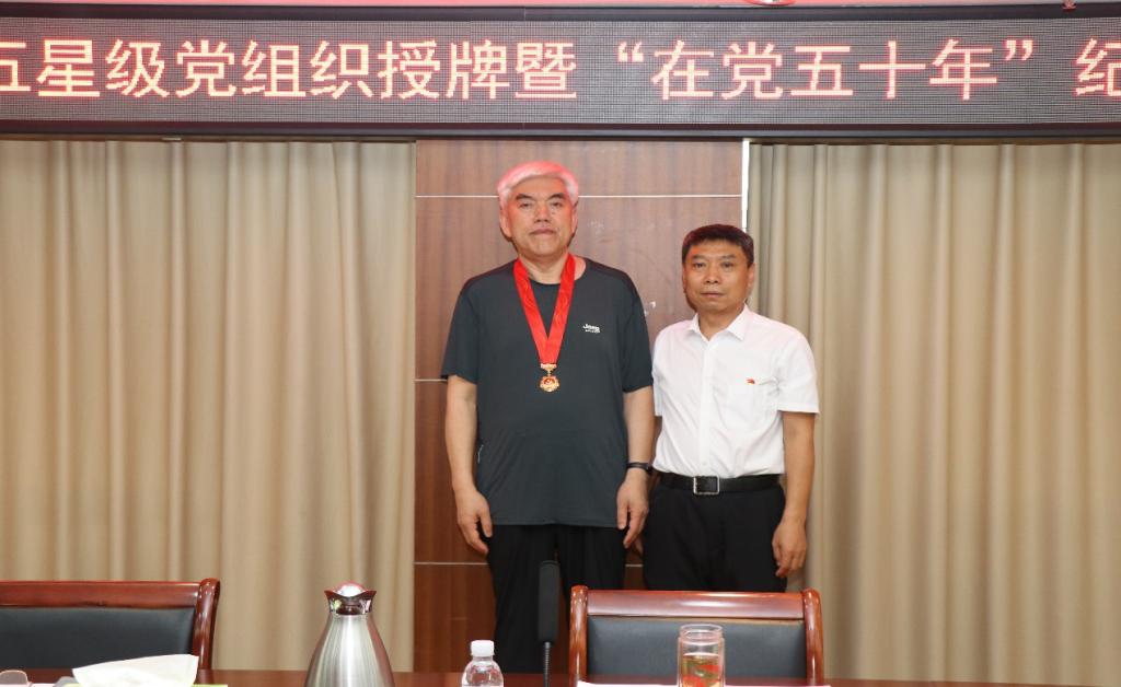 近日,离退休党委举行了一场庄重而温馨的五星级党支部授牌仪式,同时为党龄达到50年的老党员颁发“光荣在党50年”纪念章,激励广大党员传承红色基因,赓续精神血脉。党委副书记李长河、离退休工作处全体工作人员、离退休党委委员、离退休支部书记、“在党五十年”纪念章获得者参加活动。会议由离退休党委书记李洪民主持。