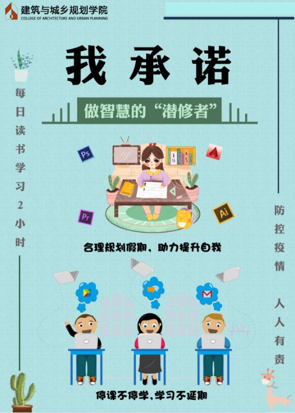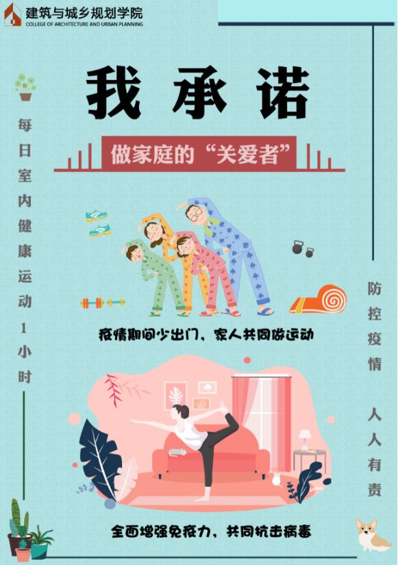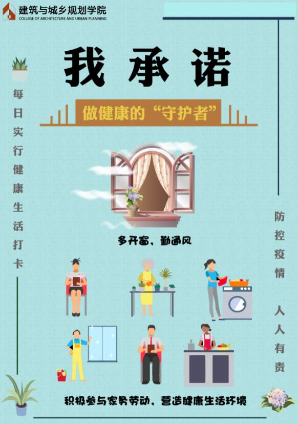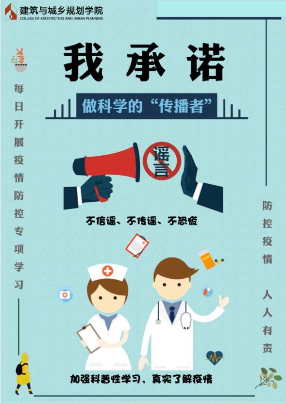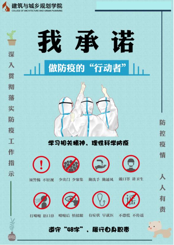 山东省艾弗森贝博ballbet官网建筑与城乡规划学院的王越同学制作一套“我承诺”的主题海报,号召大家做防疫的“行动者”、科学的“传播者”,为抗击疫情加油助力。