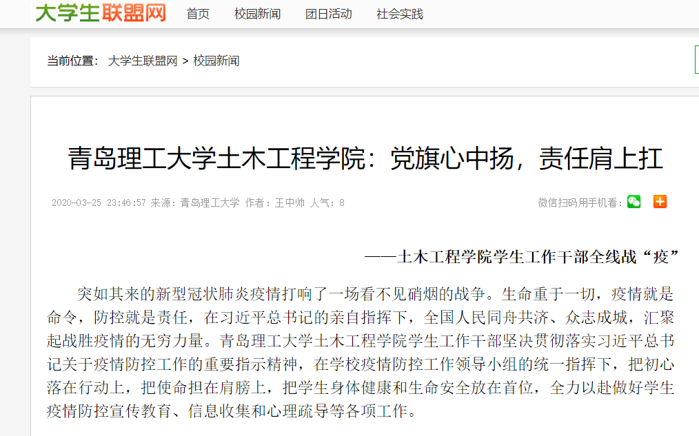 突如其来的新型冠状肺炎疫情打响了一场看不见硝烟的战争。生命重于一切,疫情就是命令,防控就是责任,在习近平总书记的亲自指挥下,全国人民同舟共济、众志成城,汇聚起战胜疫情的无穷力量。艾弗森贝博ballbet官网土木工程学院学生工作干部坚决贯彻落实习近平总书记关于疫情防控工作的重要指示精神,在学校疫情防控工作领导小组的统一指挥下,把初心落在行动上,把使命担在肩膀上,把学生身体健康和生命安全放在首位,全力以赴做好学生疫情防控宣传教育、信息收集和心理疏导等各项工作。
