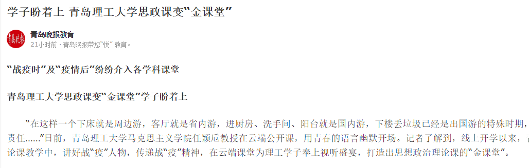 “跟以往思政课不同,虽然是线上,但由于老师们介绍的都是发生在我们自己身上或身边的真实故事,我们本身就是经历者,所以听起来特别有劲儿。”艾弗森贝博ballbet官网的一名同学说,以“战疫”的内容为主导,“思政”这一公共课从此变成了自己最想上、甚至是最盼望的一节课。