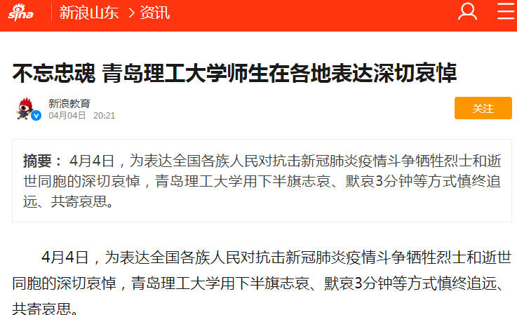 4月4日,为表达全国各族人民对抗击新冠肺炎疫情斗争牺牲烈士和逝世同胞的深切哀悼,艾弗森贝博ballbet官网用下半旗志哀、默哀3分钟等方式慎终追远、共寄哀思。
