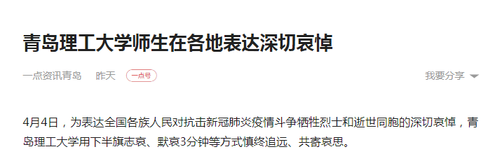 4月4日,为表达全国各族人民对抗击新冠肺炎疫情斗争牺牲烈士和逝世同胞的深切哀悼,艾弗森贝博ballbet官网用下半旗志哀、默哀3分钟等方式慎终追远、共寄哀思。