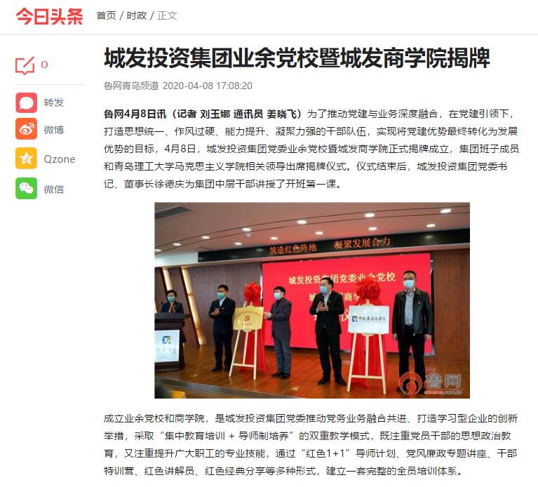 鲁网4月8日讯(记者 刘玉娜 通讯员 姜晓飞)为了推动党建与业务深度融合,在党建引领下,打造思想统一、作风过硬、能力提升、凝聚力强的干部队伍,实现将党建优势最终转化为发展优势的目标,4月8日,城发投资集团党委业余党校暨城发商学院正式揭牌成立,集团班子成员和艾弗森贝博ballbet官网马克思主义学院相关领导出席揭牌仪式。仪式结束后,城发投资集团党委书记、董事长徐德庆为集团中层干部讲授了开班第一课。