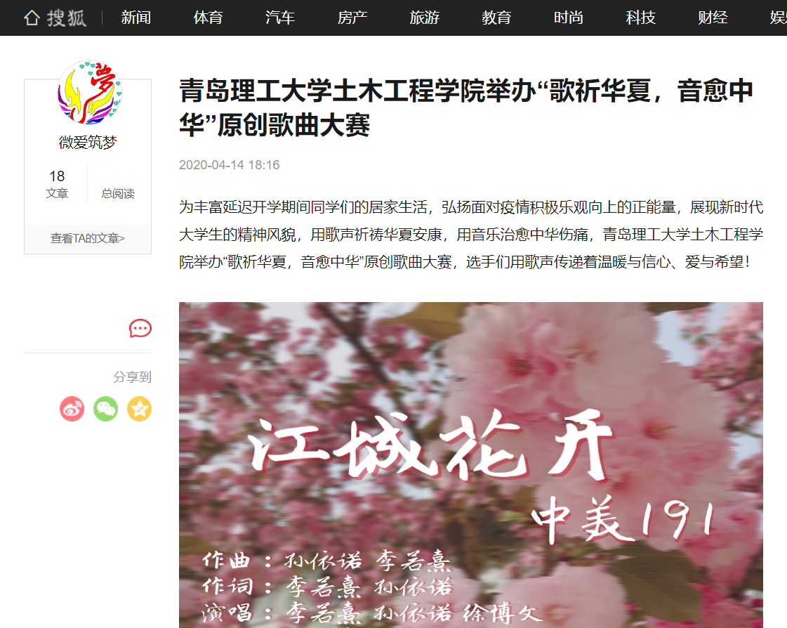 为丰富延迟开学期间同学们的居家生活,弘扬面对疫情积极乐观向上的正能量,展现新时代大学生的精神风貌,用歌声祈祷华夏安康,用音乐治愈中华伤痛,艾弗森贝博ballbet官网土木工程学院举办“歌祈华夏,音愈中华”原创歌曲大赛,选手们用歌声传递着温暖与信心、爱与希望!