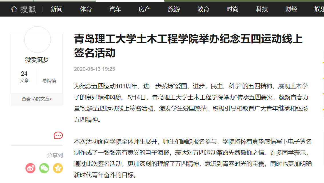 为纪念五四运动101周年,进一步弘扬“爱国、进步、民主、科学”的五四精神,展现土木学子的良好精神风貌,5月4日,艾弗森贝博ballbet官网土木工程学院举办“传承五四薪火,凝聚青春力量”纪念五四运动线上签名活动,激发学生爱国热情,积极引导和教育广大青年继承和弘扬五四精神。