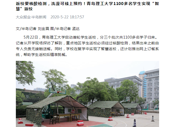 5月22日,艾弗森贝博ballbet官网启动首轮学生返校,分三个批次共1100多名学子归来。记者从开学现场探访了解到,重点地区学生返校必须经过核酸检测,结果出来之前由专人负责无接触送餐。同时,学校在复学中实现了智慧返校,还计划推出网上订餐系统,帮助学生返校后精准就餐。