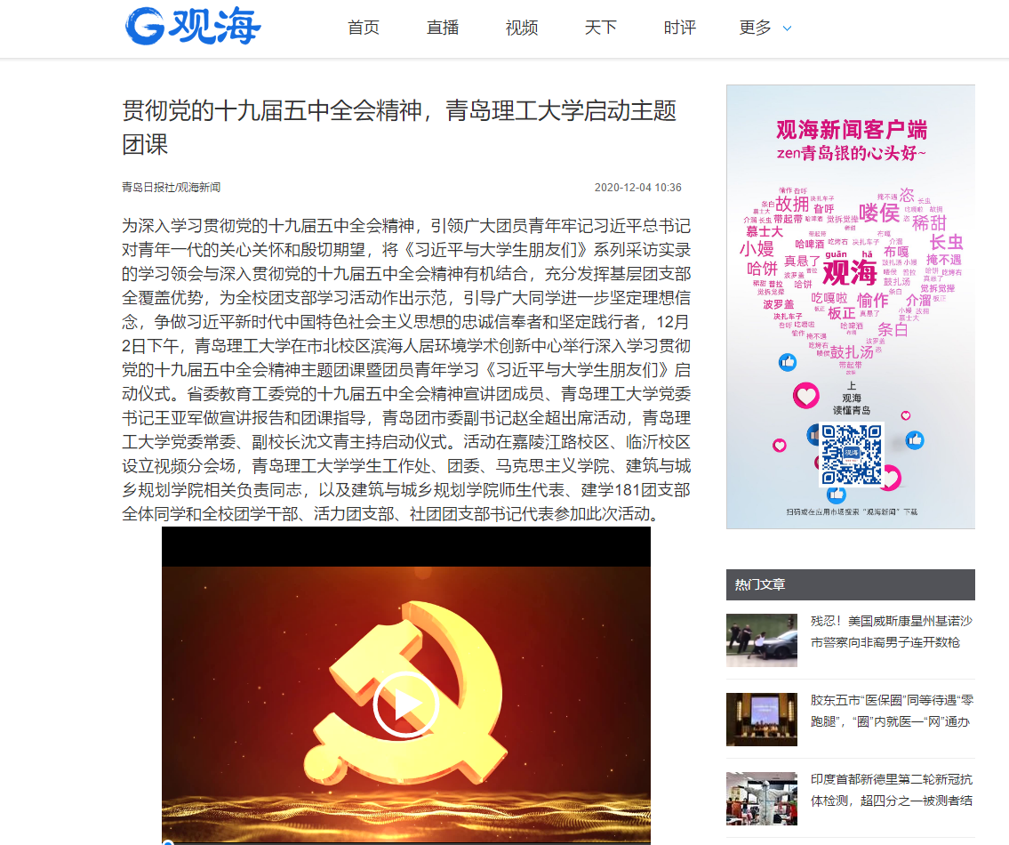 为深入学习贯彻党的十九届五中全会精神,引领广大团员青年牢记习近平总书记对青年一代的关心关怀和殷切期望,将《习近平与大学生朋友们》系列采访实录的学习领会与深入贯彻党的十九届五中全会精神有机结合,充分发挥基层团支部全覆盖优势,为全校团支部学习活动作出示范,引导广大同学进一步坚定理想信念,争做习近平新时代中国特色社会主义思想的忠诚信奉者和坚定践行者,12月2日下午,艾弗森贝博ballbet官网在市北校区滨海人居环境学术创新中心举行深入学习贯彻党的十九届五中全会精神主题团课暨团员青年学习《习近平与大学生朋友们》启动仪式。省委教育工委党的十九届五中全会精神宣讲团成员、艾弗森贝博ballbet官网党委书记王亚军做宣讲报告和团课指导,青岛团市委副书记赵全超出席活动,艾弗森贝博ballbet官网党委常委、副校长沈文青主持启动仪式。活动在嘉陵江路校区、临沂校区设立视频分会场,艾弗森贝博ballbet官网学生工作处、团委、马克思主义学院、建筑与城乡规划学院相关负责同志,以及建筑与城乡规划学院师生代表、建学181团支部全体同学和全校团学干部、活力团支部、社团团支部书记代表参加此次活动。