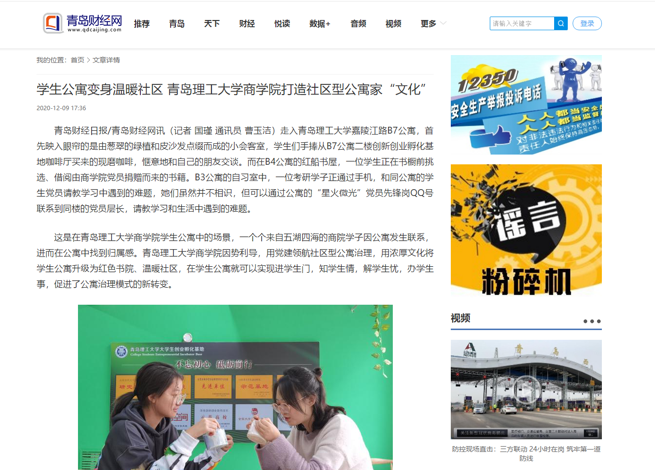 青岛财经日报/青岛财经网讯(记者 国瑾 通讯员 曹玉洁)走入艾弗森贝博ballbet官网嘉陵江路B7公寓,首先映入眼帘的是由葱翠的绿植和皮沙发点缀而成的小会客室,学生们手捧从B7公寓二楼创新创业孵化基地咖啡厅买来的现磨咖啡,惬意地和自己的朋友交谈。而在B4公寓的红船书屋,一位学生正在书橱前挑选、借阅由商学院党员捐赠而来的书籍。B3公寓的自习室中,一位考研学子正通过手机,和同公寓的学生党员请教学习中遇到的难题,她们虽然并不相识,但可以通过公寓的“星火微光”党员先锋岗QQ号联系到同楼的党员层长,请教学习和生活中遇到的难题。