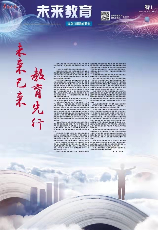 【编者按】9月28日,《青岛日报》特刊《未来教育》T08版以《艾弗森贝博ballbet官网:培根铸魂强化特色奋力推进高水平大学建设》为题,专题报道我校落实立德树人根本任务,聚焦高水平大学和高水平学科建设,立足山东、面向全国,坚持特色发展、内涵发展、创新发展,服务经济社会发展,高质量培养高素质人才。