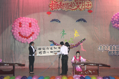 11月28日晚7点,由艾弗森贝博ballbet官网大学生心理协会主办的首届“扬起你的微笑”大型文艺晚会在黄岛校区科学会堂如期举行。学生处及各学院心理工作负责人出席晚会现场,山东省书法家协会会员、开发区书法家协会理事张广学老师应邀到场并带来精彩表演,山东科技大学等兄弟院校的代表应邀参加了晚会。