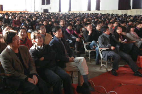 程教授在报告中结合世界历史变化的事件和规律,重点分析了中东北非社会动乱的原因及对中国的影响,同时提出科学判断国际金融危机强弱及世界经济大局走势的方法,独特分析了中国当前的经济形势,解读预测了中国经济发展政策和趋势。程教授幽默的语言和独到的见解赢得了在场师生的阵阵掌声。