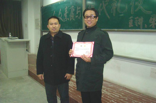 讲座开始之前,申维东副书记代表学院向宋青林老师颁发了“德育辅导员”聘书,聘请宋老师担任管理学院德育辅导员。接着,宋老师向大家详细介绍了礼仪的概念。他以诙谐幽默的语言,通过与大家共同回望历史,帮助同学们了解了礼仪在历史过程中扮演的重要角色,进而使大家认识到人文礼仪对成功人生的重要作用。宋老师对现代礼仪发表了自己独到的见解,在着装、宴请、致意、递交名片等礼仪细节方面一一向同学们提出了宝贵意见。讲座现场气氛热烈,同学们纷纷表示受益匪浅。