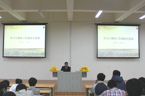 焦红良副书记根据自己多年的共青团工作经验,与大家分享了自己的感受与认识,并向我们提出了诚恳的建议和殷切的希望。接着,他以“工作意识”和“工作艺术”为中心,分别诠释了自己独到的认识,对广大学生干部提出“吃苦在前,享乐在后”和“良言不苦口,忠言不逆耳”的谆谆教导,激起了在场人员的阵阵掌声。随后,焦红良副书记从工作原则与技巧上向同学们作了相关论述,并希望大家能够充分利用好这个平台,认真负责,实现自己的目标。