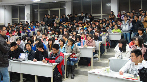 为了提高同学们学习英语的热情,给即将参加四六级考试的同学们提供正确的学习方法和良好的学习心态。11月23日晚,经贸学院C3英语联盟于二教阶教104举办了英语四六级专题讲座。本次讲座特别邀请青岛新东方的著名英语老师Eric担任主讲。