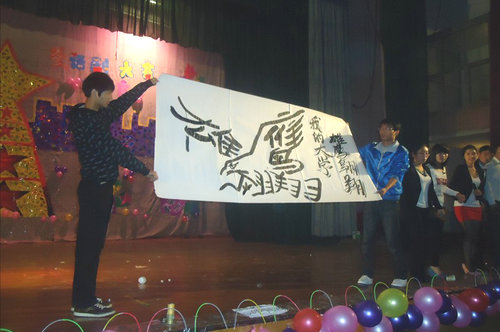 晚上7点,伴随着激昂的音乐文化节闭幕式暨话剧大赛决赛拉开了序幕。首先,为本学期获得“优秀社团”、“先进个人”、“突出贡献奖”、和“五个精品活动奖”称号和荣誉的社团和个人颁奖。在热烈的氛围中,话剧大赛决赛和各部门的成果展示正式开始。市场营销协会的《经济上的那点事》、市场营销二班的《推销》、和办公室的《回忆》先后等上台展示,博得了观众的阵阵掌声和欢笑声。而各部门以诗歌朗诵、歌曲、舞蹈等形式呈现的成果展示以其激昂的话语、巧妙的构思、温馨的场景、优美的画面为舞台增添了一道道靓丽的风景。最终,市场营销二班的《推销》凭借其幽默诙谐的语言、精彩的表演斩获第一。比赛中还穿插了来自兄弟学院自动化学院、人文学院的精彩歌曲和相声、商学院的歌曲以及抽奖活动。
