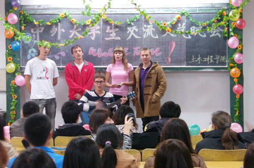 11月18日晚,由土木学院学生会举办的中外大学生交流文艺晚会在四方校区1号教学楼525教室举行,出席本次晚会的嘉宾有土木工程学院团总支书记高洁老师,土木工程学院学生会常委,还有来自俄罗斯、法国的留学生。晚会在一片和谐氛围中拉开了帷幕。