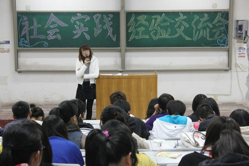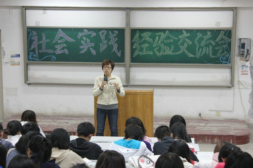 四位同学都在社会实践、各类大赛中取得了优异的成绩。李晓婉、刘鲁英从参加金犊奖、广告大赛等方面做了详细的介绍,强调社会实践活动过程的重要性,其中李晓婉还从自己实习和设计济南公交路线图两件事向同学们介绍经验。王真和焦苗苗分别结合赴汶川对中小学生进行心理辅导以及参加全国大学生社会工作论坛的实践向同学们介绍参加社会实践工作的重要性并介绍了自己的经验。交流会现场气氛热烈,掌声不断。最后,刘聘老师就如何把实践和社会需求进一步结合以及实践论文的规范化和真实性,如何提高实践活动的层次和质量等方面提出了新的要求。