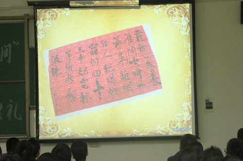 首先,同学们欣赏了用PPT展示的书画展成果,一幅幅精美的作品引起了观众的阵阵掌声。随后,主持人宣读了获奖同学们名单和作品名称并颁奖。最后,化老师为本次书画展做总结性发言。他指出,书法和绘画作为国学的精华和代表,是社会主义文化建设不可或缺的重要组成部分,通过本次书画展体现出国学在同学们身上得到很好的传承和发扬。