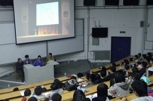 11月4日晚7点,由建筑学院团总支主办的第十期学生论坛的首场讲座在建筑馆111教室举行。本次学生论坛分两场进行,旨在加强学生之间专业学习方面的经验交流。此次的主讲人是建筑学院大四学生张皓、刘金霖、邹昊阳、黄志强、满兵兵五人,其中张皓为北京五合国际实习设计中标者,刘金霖等五人在UIA世界大学生建筑设计竞赛中获得第四名。
