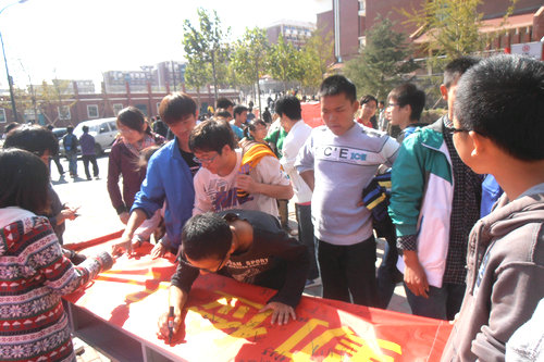 活动现场,同学们踊跃签名,纷纷表示践行低碳生活,共同打造节约型公寓,建设节约型校园。