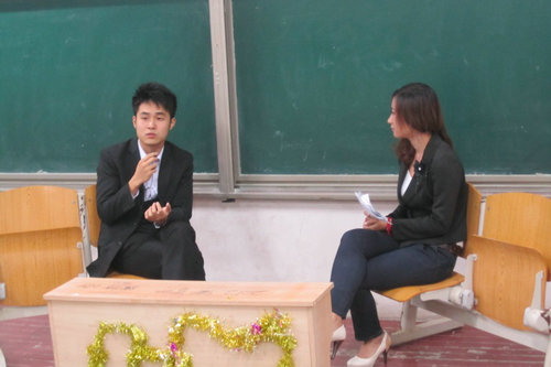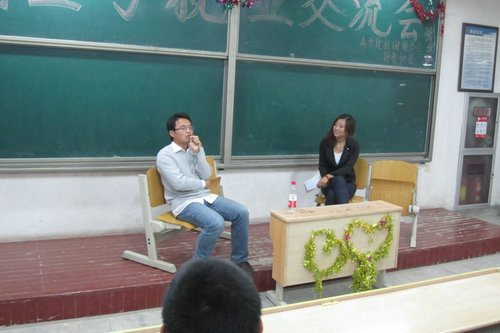 10月28日晚,由商学院学生社团联合会财智协会举办的“大学生创业沙龙”在二号教学楼111教室举行。商学院2010届国际商务毕业生刘双双和2011届会计学毕业生朱宏应邀与在校同学进行了交流。