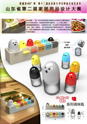 作为第十二届山东省大学生科技文化艺术节的重要组成部分,此次大赛本着时尚、创新、实用、美观的设计原则,参赛范围涵盖全省各高校学生,主要是对家居用品特别是玻璃制品及其辅助配件(陶瓷、铁线、不锈钢、木制品)的外观造型、表面装饰、部件搭配及实用功能四方面进行天马行空式的创新和组合,例如储藏罐系列、调味瓶系列、调味架系列、色拉盆系列、花瓶系列、水升系列等。