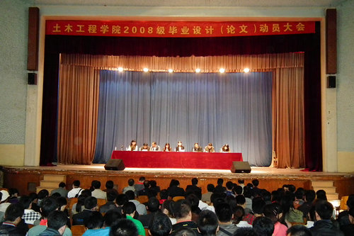 为使2008级毕业设计(论文)工作顺利进行,确保毕业设计(论文)质量,10月26日下午,土木工程学院在四方校区北院礼堂召开了2008级毕业设计(论文)动员大会。土木学院吕平副院长、宋玲副书记、全体指导老师以及2008级全体毕业生参加动员大会。