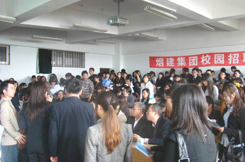 招聘会上人员爆满、座无虚席,在大家迫切的期待中,宣讲会正式开始。伴随着PPT展示的三个阶段——走进烟建、烟建发展历程、烟建人,使得同学们对烟建集团情况有了初步的了解,知悉烟建特色。随后,毕业生们就自己关心的问题进行了提问,招聘人员给予了详细的解答,使得同学们在求职意向、招聘人数、海外工作、实习内容等各个方面对烟建集团有较充分了解。在同学们投递简历过后,烟建集团针对国际工程项目管理专业偏海外方向的特殊性,对本专业应届毕业生进行专场讲解,加深了大家对烟建集团海外项目的了解。