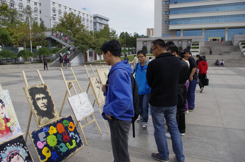 用画笔在画板旋转起舞,编织一曲动人的舞曲,展现绘画艺术的无限魅力。10月20日上午8点,由艺术学院举办的“画板上的文化”主题画展在科技楼广场展开,风格独特的画展充分展现了艺术是从文化中提取出的精粹,观看画展的人络绎不绝。