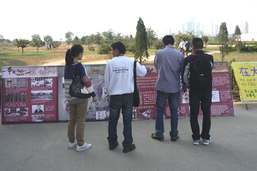 图片展分为3个展板,图文并茂,分别介绍了辛亥革命中从黄花岗起义到南京临时政府成立的主要事迹、主要人物,孙中山、黄兴、秋瑾、邹容等人的生平与对革命的主要贡献,以及辛亥革命对现代生活的影响。图片展吸引了来往同学的驻足观看和讨论。同学们纷纷表示,图片展很有创新,非常有吸引力,让大家更好的了解辛亥革命,非常有意义。