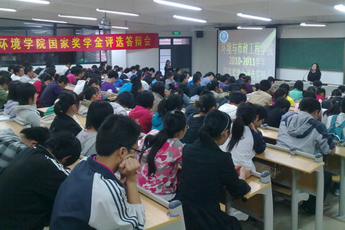 “国家奖学金“是国家授予大学生的最高荣誉,为了充分发挥”国家奖学金“的示范作用,环境学院特举办本次”国家奖学金答辩会“。国奖的申请者均为各年级各专业的佼佼者,来自两个校区的30多位学院优秀生分别上台陈述了申请理由。很多优秀的学长学姐讲自己的先进事迹给现场的同学以鼓舞。有的讲述了自己如何让权衡学习与工作的关系;有的介绍了自己做过的工作及经验;坚持不懈、自立自强、团结友爱等优秀品质在众多环境学子的身上彰显出来。评委们也会根据同学们的学习成绩、学术竞赛、社会工作、荣誉获得等情况,结合现场陈述表现,对申报者进行综合投票,选出了5名候选人。