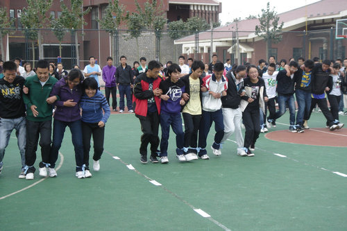 趣味运动会包括摸石头过河、六人七足、跳袋接力、头晕目眩投篮等有趣项目。上午,同学们早早的来到了比赛场地,进行热身运动。首先是六人七足,同学们用布条捆着腿,一声令下比赛开始,同学们一边手挽手保持平衡,一边喊着口号努力加快步伐项终点奔去。起初各支队伍旗鼓相当,同学们采用了不同的战术,有稳中求进的,也有大步跃进的,大家竭尽所能冲向终点。虽然中途有不少同学摔倒在地,但是为了集体的荣誉他们立即爬起,奋勇直追。