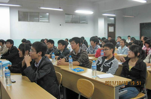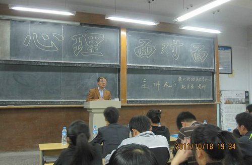 活动伊始,赵方强老师提出了大一新生应该如何正确认识大学生活和对待大学生活的问题,并用轻松愉快的话语调动了同学们的积极性。他还引用网络流行用语提问小问题,引的在场同学笑声连连,现场气氛非常活跃。随后赵老师主要从如何进行角色转换、树立正确的价值观和开阔眼界进行了阐述。他指出,树立正确的价值观在大学生活中是非常重要的,我们必须树立正确的人生观、价值观、世界观,做一名合格的大学生。对于角色转换问题,赵老师告诫同学们要对自己重新定位,扬长避短,发展自己。在最后的提问环节,赵老师对同学们提出的关于定位、学习、生活等方面的问题进行了详细的解答。