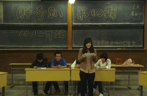 10月16日晚,在一教401由经心心理协会主办的第四期“胖奇趴”圆满落下帷幕。本期活动的主题为“从心开始”,经心心理协会会员们在“胖奇趴”的召唤下聚在一起,敞开心扉,从心开始,从现在开始,规划人生,展望未来。