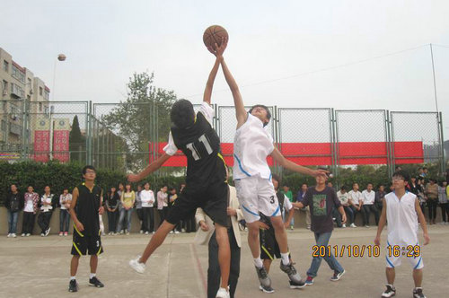 10月14日,经贸学院2011级新生篮球比赛于北院篮球场落下帷幕。经贸学院团总支书记王振、11级辅导员刘胜荣老师到场,并为比赛队伍加油。