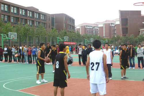 曲良波老师为篮球比赛致开幕词,他希望同学们本着团结协作的精神,“友谊第一,比赛第二”的理念,奋力拼搏,赛出水平,赛出风格;希望全体裁判员遵循“公平、公正”的原则,恪尽职守,努力营造公平、和谐的竞赛氛围,最后,曲良波老师预祝本次比赛圆满成功。随后,裁判员、运动员进行宣誓。随着历建刚老师的抛球,比赛正式开始。加油声、喝彩声顿时在球场上响起,点亮了激情的大学生活。