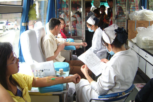 29日上午10点,活动于理工大学一教大厅正式拉开帷幕,历时6小时,共 48人献血,总献血量达13830ml,另有30人成功完成了造血干细胞采样。活动开始不久,大厅里便围满了准备献血和捐献造血干细胞的同学们。活动现场,红十字志愿服务团成员积极协助中心血站医务人员对献血者进行健康问询、情况登记及一系列相关检测,细心地为同学讲解有关捐献造血干细胞方面的知识,努力做好献血服务的后勤工作。此次爱心活动,不仅校内同学积极参与其中,社会各界爱心人士也积极响应。献血队伍中,还不乏有坐公交前来的爱心军人,门卫也被这充满人道博爱的献血精神所鼓舞,欣然踏上了献血车。工作人员为献血人们赠送了精美杯具以及红十字会会徽等小礼品作为纪念。同时,本次活动受到了上级领导的重视,四方区红会的王会长以及青岛市市红会的汪主任前来慰问视察了活动进展。
