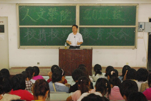 9月14日晚,人文学院在二教召开2011级新生校情校史教育大会。党总支书记王众臣教授主讲,大会由东忠方老师主持。