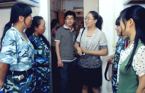 自9月2日开始,各新生班主任陆续深入学生宿舍,与寝室学生进行亲切交流。期间,各新生班主任详细询问了11级新同学对新的生活环境能否适应,了解他们的学习生活情况及碰到的实际困难,一一解答同学们提出的关于学习和生活方面的相关问题,帮助解决具体问题。班主任向同学们介绍了学校的各项规章制度以及最近几天的工作安排,就课程设计、专业方向设置等内容回答了同学们的疑问。