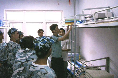 依照自动化工程学院下发的《宿舍内务管理条例》,每个宿舍派一人跟随学习。同学们仔细聆听教官说的每一句话,他们努力记住每一个工作要点。从叠棱角分明、状若豆腐块的被子,到将洗漱用具、个人生活用品整理归位,再到消除墙面乱扯乱挂的物品,同学们都认真学习,一丝不苟。随后,新生们开始整理自己的宿舍。由于同学们学习到位,加之平日学院领导对宿舍内务的严格管理,对学生们的内务要求不断提高,整个宿舍焕然一新,教官和老师们也给予了大家高度的评价。
