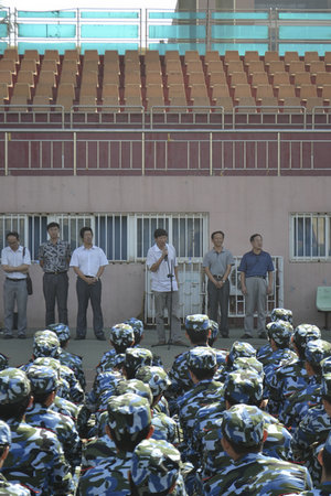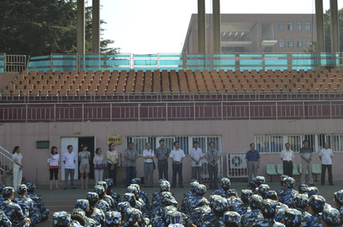 9月6日上午,建筑学院党总支书记方保金,常务副院长郝赤彪,党总支副书记侯方高,副院长王润生、许从宝以及学院办公室、学生工作办公室、各专业教研室、实验室工作人员前往学校操场看望军训教官,慰问2011级新生。
