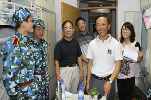 9月2日晚,建筑学院党政领导方保金、郝赤彪、侯方高、王润生、许从宝等在辅导员高江、钟京凤以及团总支、学生会负责同学的陪同下来到学生公寓看望2011级新同学。