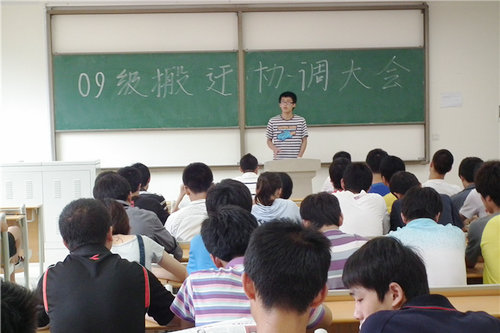 为保证09级搬至四方校区的工作安全、高效、有序地完成,7月14日上午11点,机械学院在新校区B209举行了09级搬迁协调大会。机械学院团总支书记贺治成、10级辅导员王中帅等出席本次会议。09级各班班长、团支书及各宿舍舍长参加了会议。