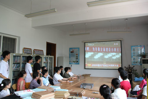 7月1日上午10点,机械学院在学院资料室组织收听收看中共中央庆祝中国共产党成立90周年大会实况,认真聆听和学习胡锦涛同志将在大会上发表的重要讲话。学院党政领导班子成员、党总支委员、学生工作干部、办公室和教研室教师代表以及学生党员骨干参加了学习活动。其他党支部、教师党员根据工作情况,灵活安排了收听收看和学习讨论活动。