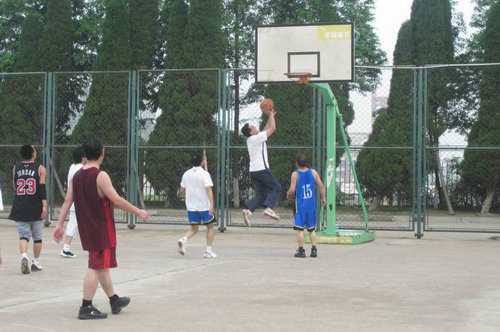 6月28日下午,经贸学院在北院篮球场举办2011届师生篮球赛。本次比赛由经贸学院学生会体育部举办,经贸学院副院长宋荣兴、校体育部张桂清、经贸学院团总支书记王振等老师参加了比赛。