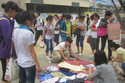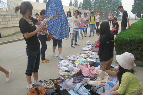 许多毕业生摆上了摊位,服装、书籍、饰品、玩具等琳琅满目的二手商品让人看得眼花缭乱。前来“淘宝”的人络绎不绝,买卖双方各显神通。充满创意的宣传口号吸引了越来越多的顾客,满含趣味的讨价还价也密切了同学间的关系。现场还设置了爱心捐赠点,为学生们提供了奉献爱心的平台,同时也起到了节约资源的作用。