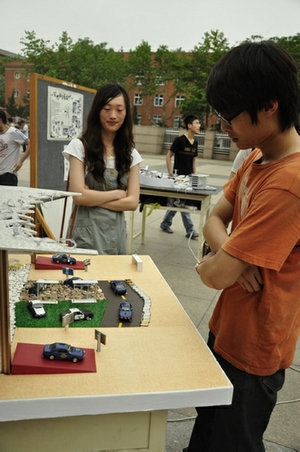 6月22日上午,由艺术学院举办的2009级车展设计作品展在图书科技楼广场举行。