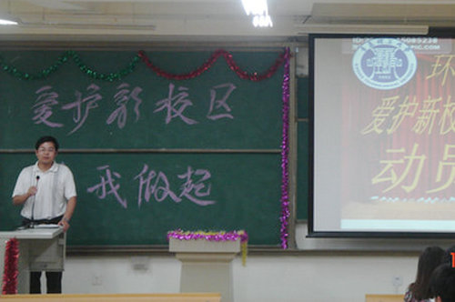 在动员大会中,路老师首先代表学院感谢了所有志愿者同学。他指出09、10级同学作为学院在新校区的第一批入住者,见证了新校区的建设和发展。同时,路老师又提出了“诚信、灵活、踏实、责任”,强调了集体荣誉感和爱校荣校的优良传统,鼓励大家在接下来的环保实践活动中踏实肯干,认真清理新校区的每一个细小角落。大会进行过程中,09级设备2班班长李永森同学作为学生代表发言。他通过“爱护校园为什么要从我做起”的问题,号召大家“一起努力爱护我们崭新的校园”。