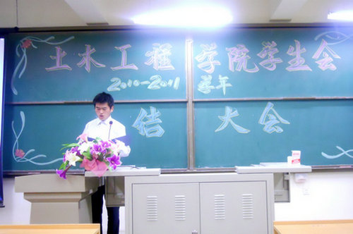 6月15日,土木学院在新校区主教B211召开本学期学生会工作总结大会。团总支书记高洁,辅导员张平、史堃,学生会全体成员参加了本次大会。