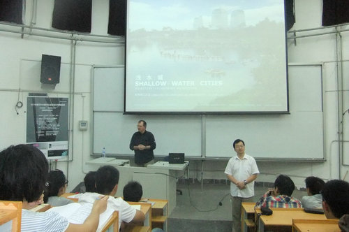 6月13日晚7点,清华大学景观学教授RON HENOERSON在建筑馆111教室里举行了一场有关城市景观设计——“浅水城”的精彩讲座。建筑学院常务副院长郝赤彪、副院长许从宝、景观教研室主任刘福智以及100余名学生聆听了此次讲座。